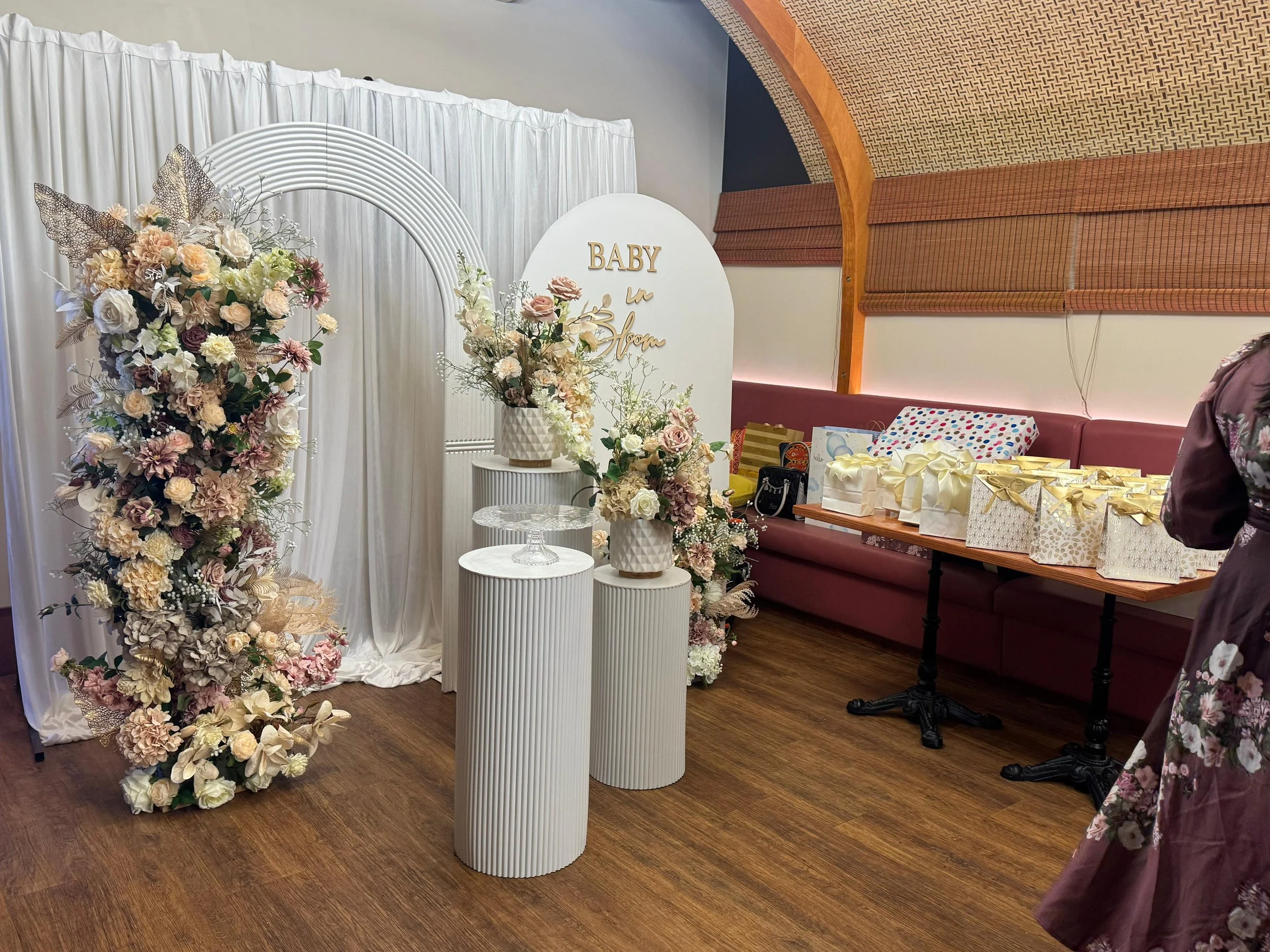 Our main dining space is crafted for connection, blending soft earthy tones with rattan textures, curved timber arches and a warm ambient glow. Long cushioned banquettes, woven blinds and polished wooden tables create a setting that feels both modern and culturally inspired. Designed to host gatherings with ease, it offers a warm, inviting atmosphere perfect for celebrations, group events and memorable dining experiences.